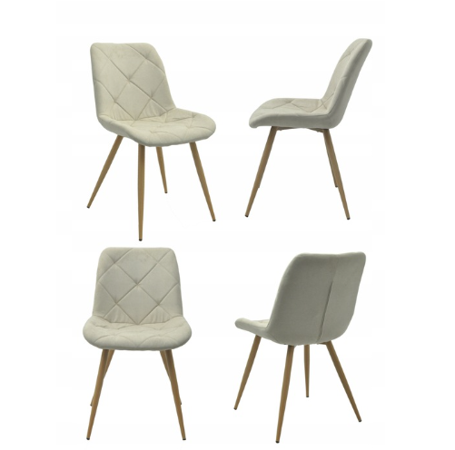 Stabilne metalowe malowane nogi z efektem drewna nadają krzesłu wyrazisty, loftowy charakter i podkreślają jego nowoczesny styl. Ergonomicznie wyprofilowane oparcie zapewnia wysoki komfort użytkowania — zarówno podczas rodzinnych posiłków w jadalni, pracy przy biurku, jak i relaksu w salonie.