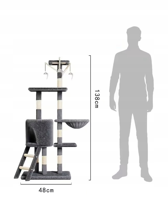 Strona główna » Akcesoria dla zwierząt » Drapak dla kota » Drapak dla kota duży słupek szary 5 poziomów - domek, legowisko, zabawki