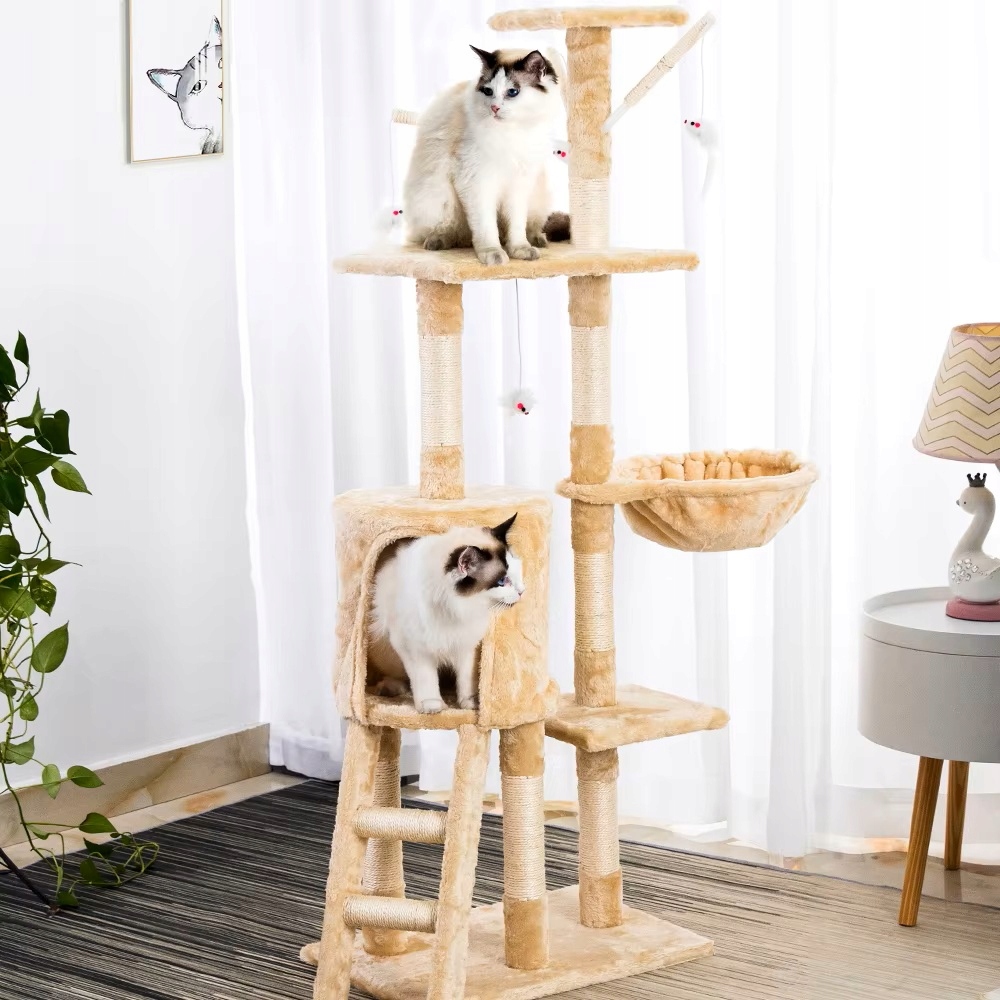 Podaruj swojemu kotu przestrzeń, która spełni wszystkie jego potrzeby – od zabawy, przez wspinaczkę, po błogi odpoczynek. Ten rozbudowany drapak to imponująca liczba atrakcji w jednym miejscu! Liczne poziomy, platformy widokowe, przytulne kryjówki i wygodne legowiska tworzą koci raj, w którym nie ma miejsca na nudę.