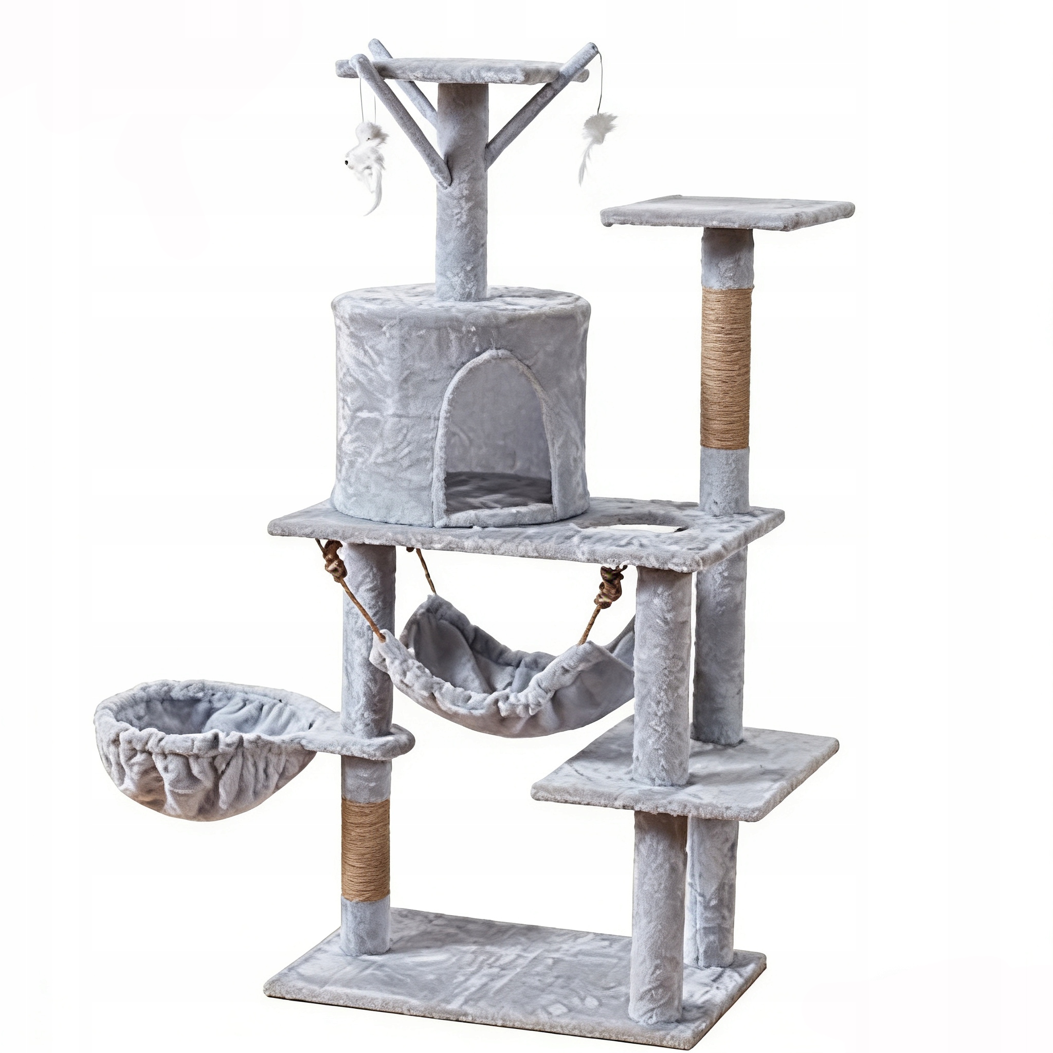 Drapak dla kota duży słupek szary 7 poziomów - domek, legowisko, hamak Rodzaj drapak wysoki legowisko słupek do drapania wieża