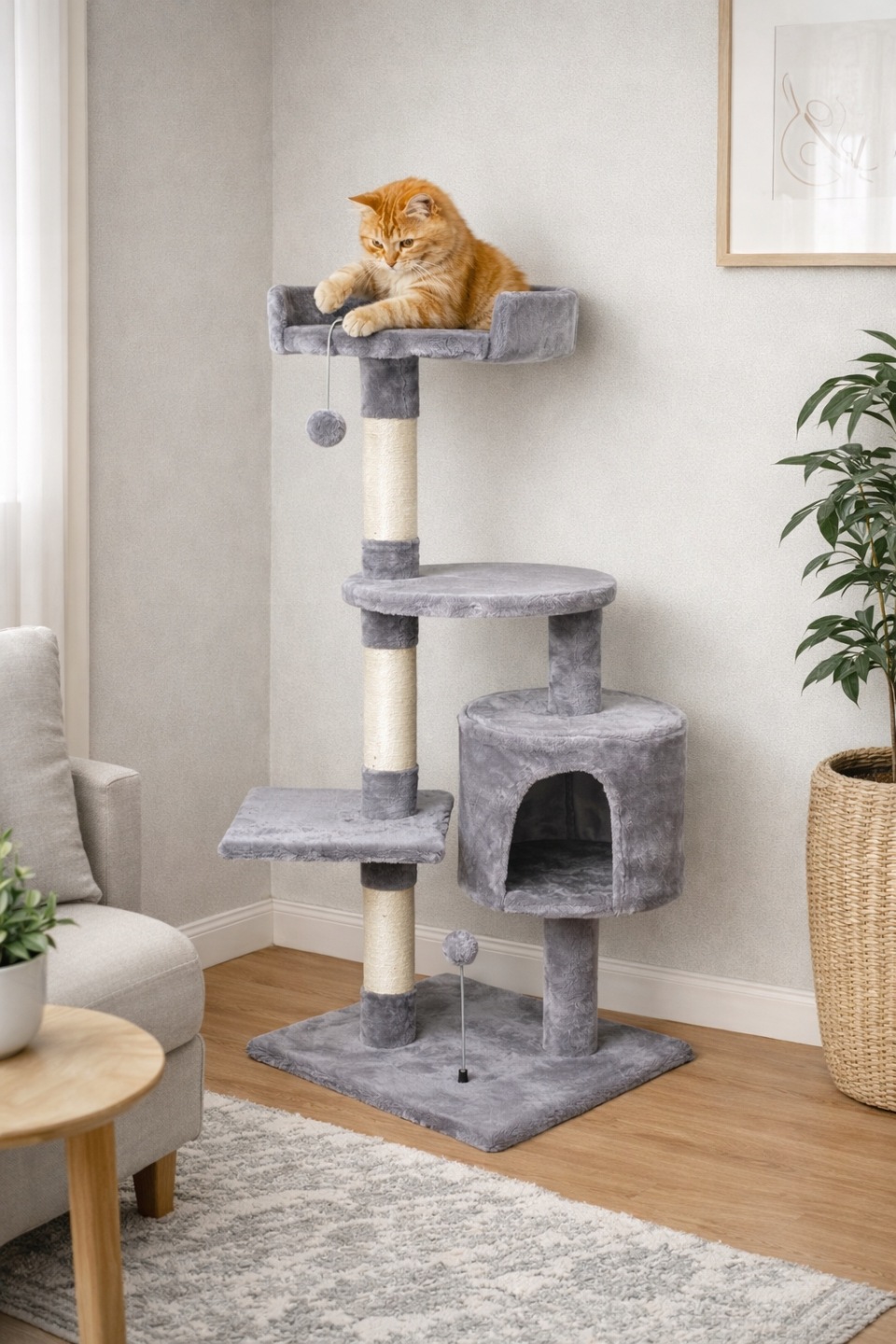 Stylowy i funkcjonalny drapak w eleganckim, szarym kolorze to idealne miejsce do zabawy, odpoczynku i ostrzenia pazurków. Doskonale wpasuje się w wystrój salonu, sypialni czy kącika dla pupila, zajmując niewiele miejsca dzięki kompaktowej konstrukcji.