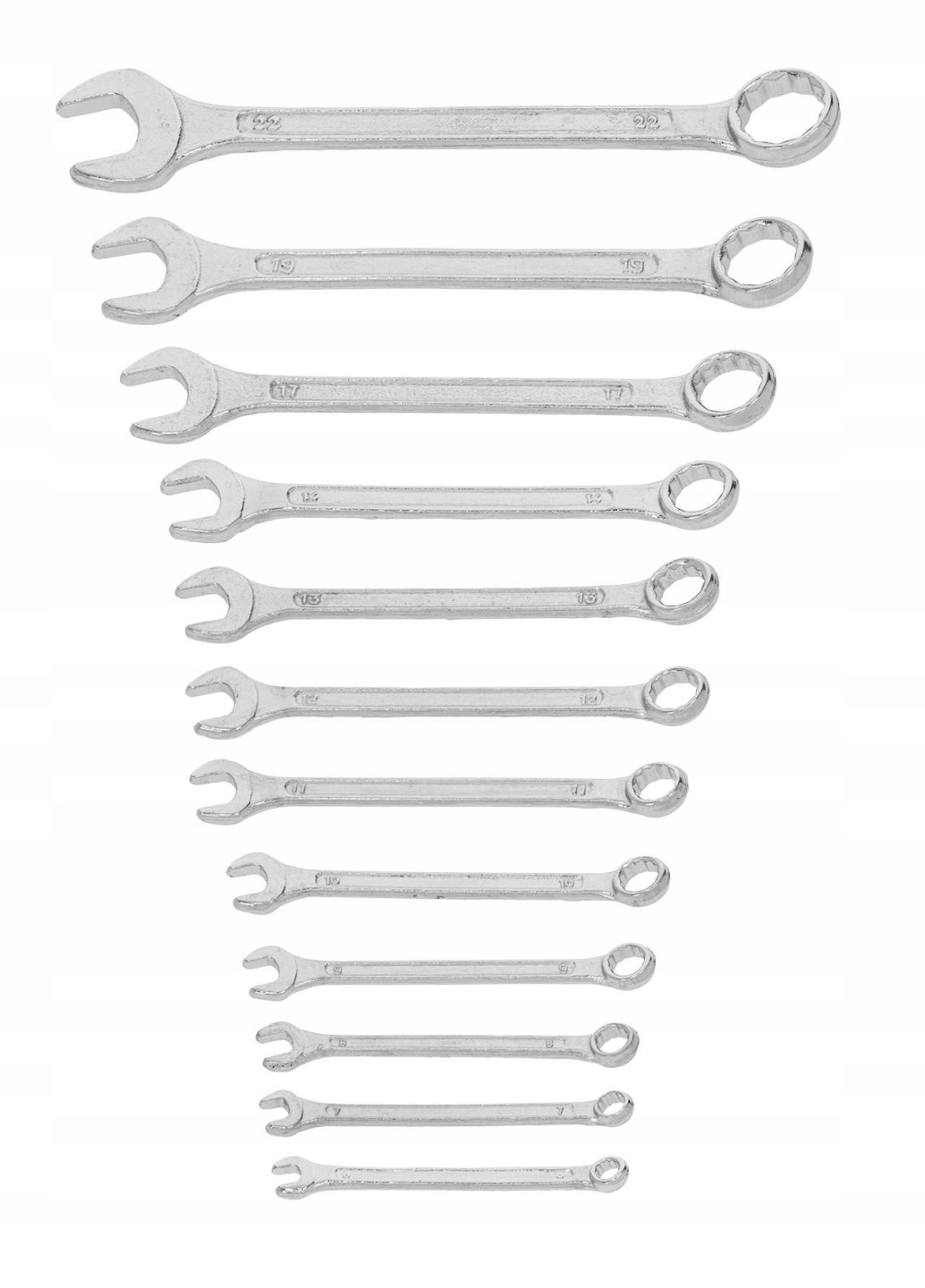 Funkcjonalny komplet 12 kluczy w różnych rozmiarach, który ułatwi każdą pracę związaną z odkręcaniem i dokręcaniem śrub oraz nakrętek. Idealny zarówno do codziennych napraw w domu, jak i bardziej wymagających zadań w garażu czy profesjonalnym warsztacie.