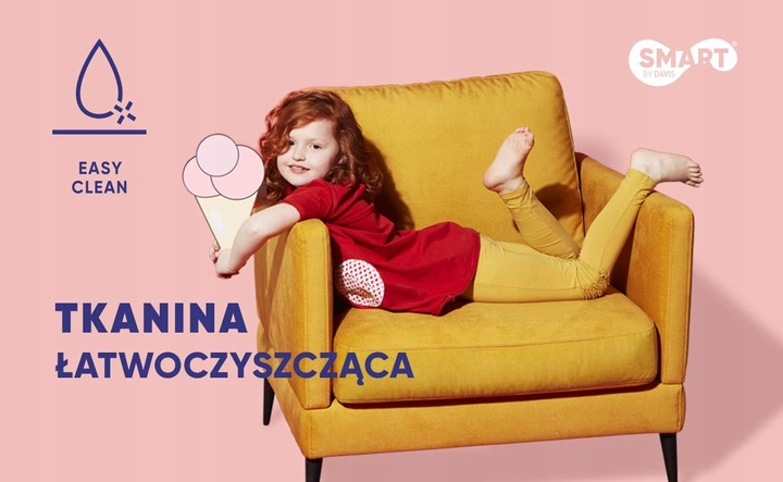 Model został obity elegancką tkaniną, która prezentuje się stylowo, a jednocześnie jest praktyczna i przyjemna w codziennym użytkowaniu. Dzięki zastosowaniu technologii Easy Clean oraz powłoce hydrofobowej, materiał utrudnia wchłanianie rozlanych płynów i pozwala na łatwe usuwanie nawet trudnych zabrudzeń.