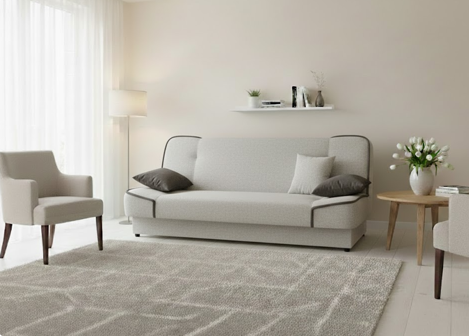 Prosta, solidna konstrukcja oraz ergonomiczne proporcje zapewniają wygodne siedzenie i komfortowy sen. Wersalka Maxim doskonale pasuje do salonu, pokoju dziennego, młodzieżowego lub gościnnego.