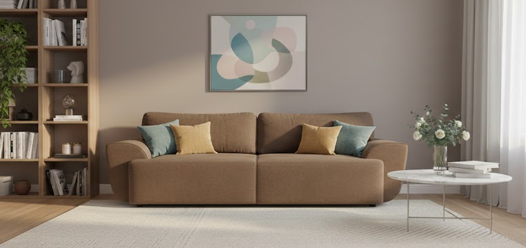 Sofa Cosy to niewątpliwie przykuwająca uwagę duża kanapa do salonu. Zwraca na siebie uwagę miękkimi liniami i rozłożystym kształtem. Ciekawy design, nowoczesna tkanina sztruks to hit tego roku!