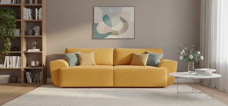 Strona główna » Sofy i Wersalki » Cosy » Sofa Cosy żółta na sprężynach z funkcją spania i pojemnikiem
