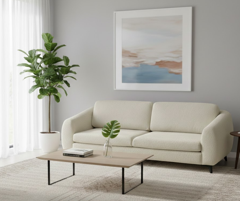 Jej konstrukcja i użyte materiały zapewniają komfort w czasie wypoczynku. Dodatkowo miła w dotyku tkanina boucle jest tkaniną uzyskaną z recyklingu butelek PET, co cieszy wszystkich dbających o planetę klientów.
