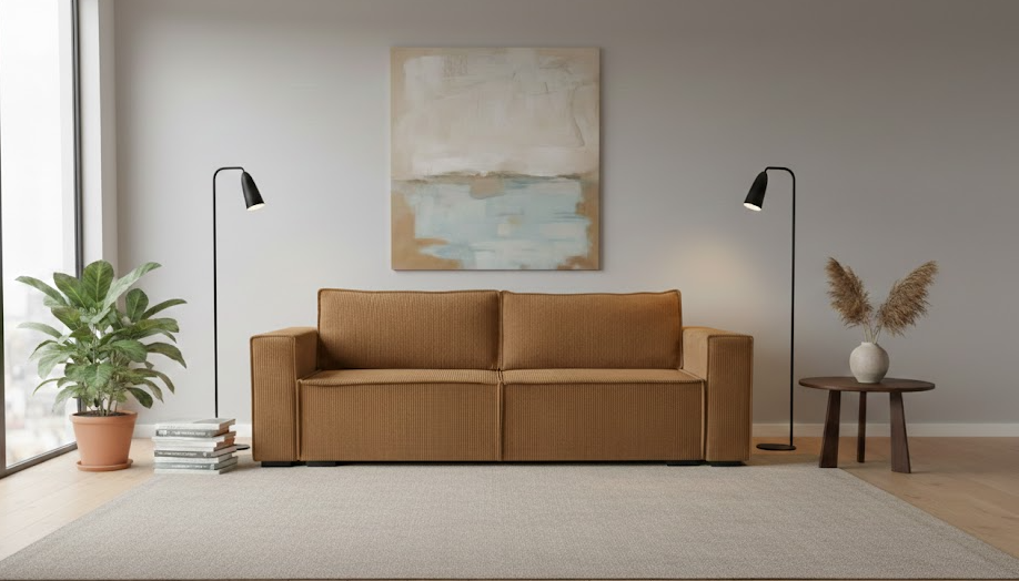Prosty design, nowoczesne przeszycia i zastosowana tkanina sztruksowa to hit tego roku! Do kompletu można dodać pufę Smart znajdującą się na innych aukcjach.