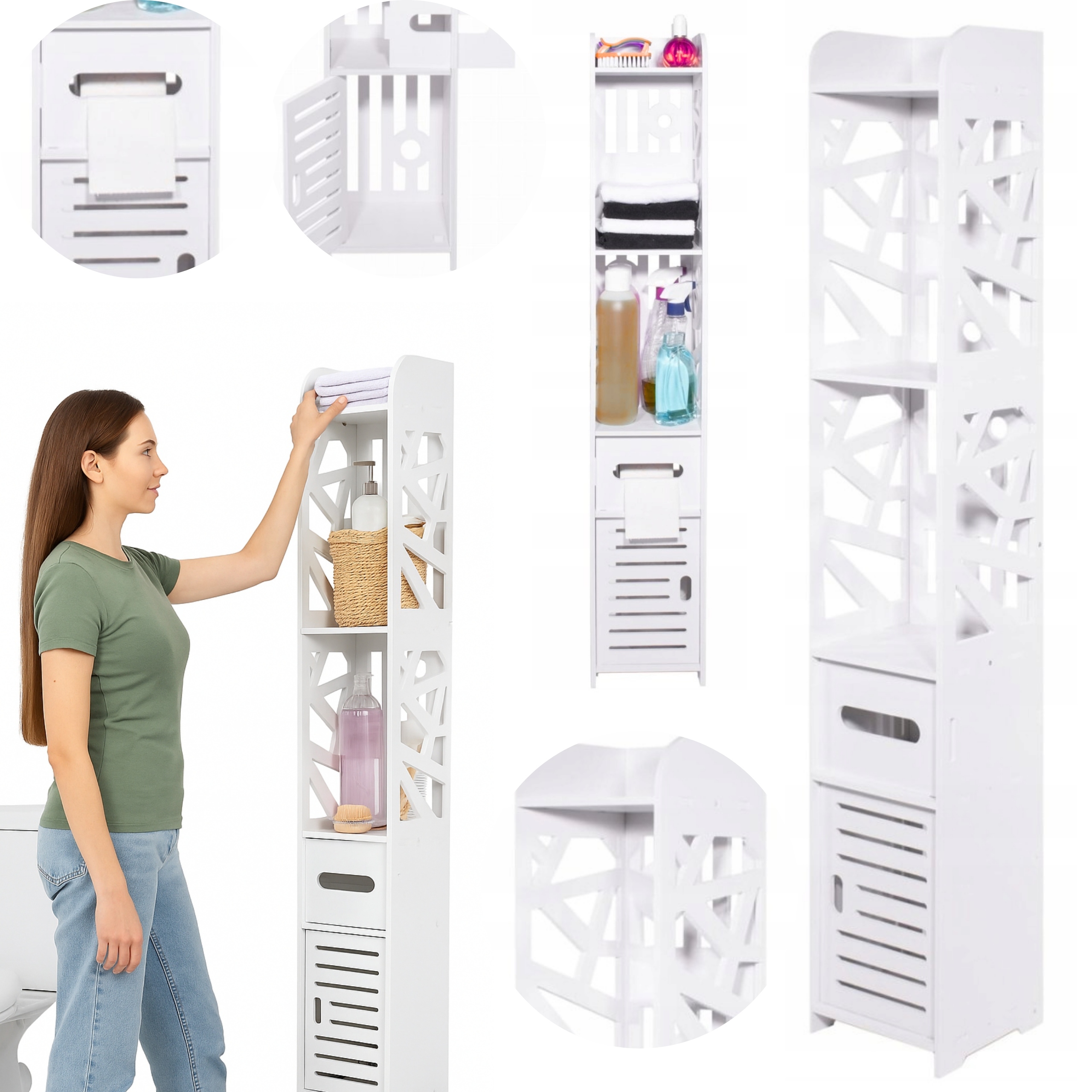 ⭐️ Otwarte półki, zamykana szafka oraz praktyczna szuflada na drobiazgi lub papier toaletowy