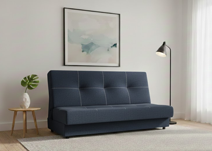 Łatwy w obsłudze mechanizm otwierana pozwoli na szybką zmianę mebla do dziennego wypoczynku w wygodne łóżko, a w pojemniku na pościel schowasz wszystko co do potrzebne do spokojnego snu.
