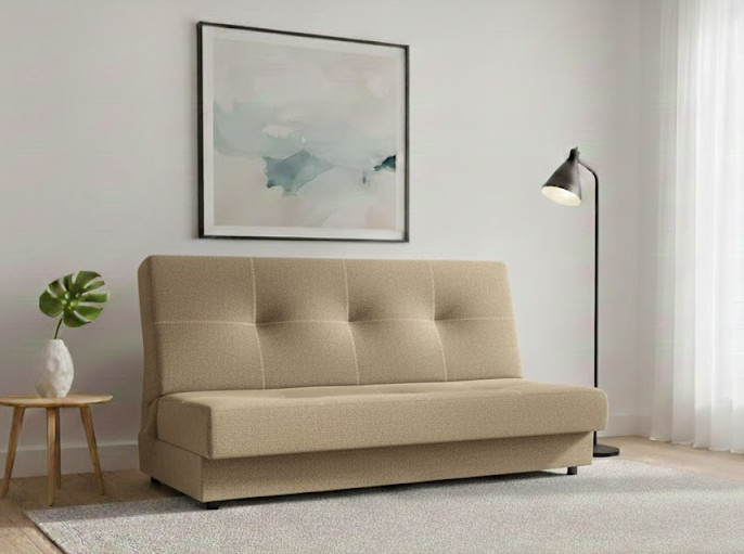 Łatwy w obsłudze mechanizm otwierana pozwoli na szybką zmianę mebla do dziennego wypoczynku w wygodne łóżko, a w pojemniku na pościel schowasz wszystko co do potrzebne do spokojnego snu.