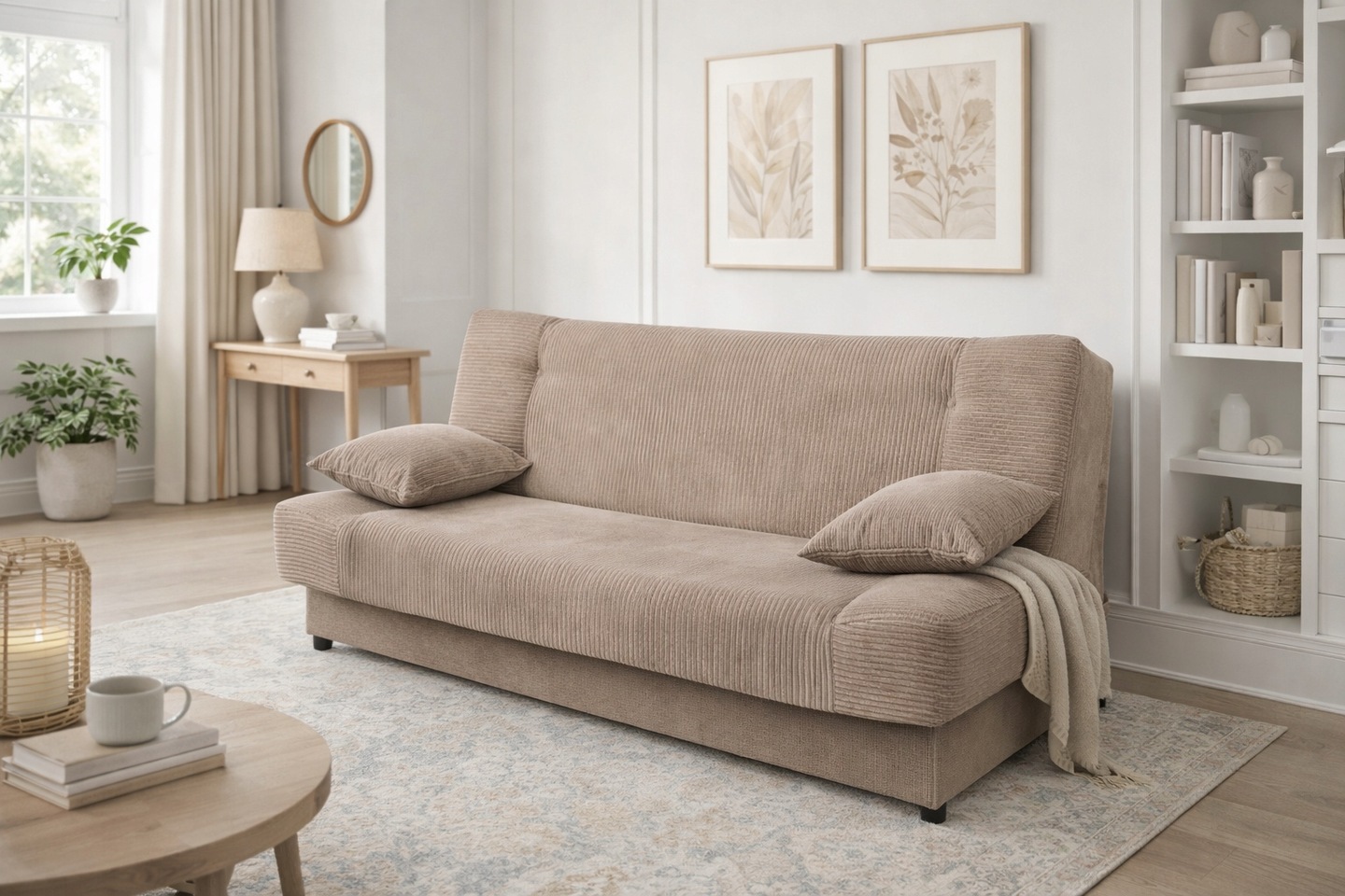 Strona główna » Sofy i Wersalki » Jaś » Wersalka JAŚ sztruks CAPPUCCINO z funkcją spania pojemnik sprężyny