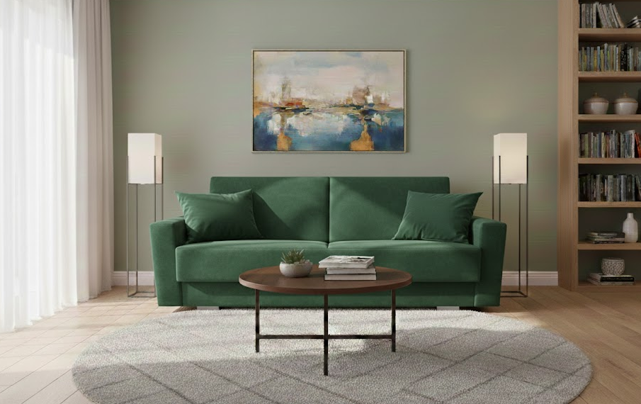 Magda to rozkładana wersalka o modnym prostym kształcie i miłej welurowej tkaninie.Swoim wyglądem wpasuje się do eleganckich wnętrz jak i przytulnych małych w stylu boho. Intensywna barwa, miękka w dotyku, wysokiej jakości tkanina przypominająca aksamit i dwie poduchy tworzą klimat do przyjemnego odpoczynku.