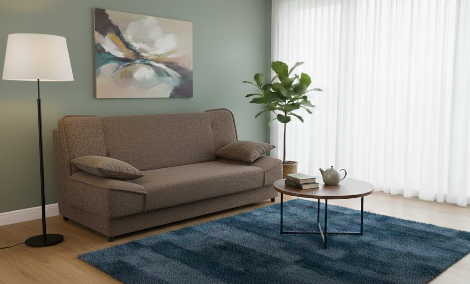Wersalka rozkładana typu finka w bardzo łatwy sposób zamieni mebel dziennego wypoczynku w wygodne łóżko. Dzięki sprężynom bonel wyśpisz się na niej jak na materacu, a kołdrę i poduszkę schowasz w obszernym pojemniku na pościel.