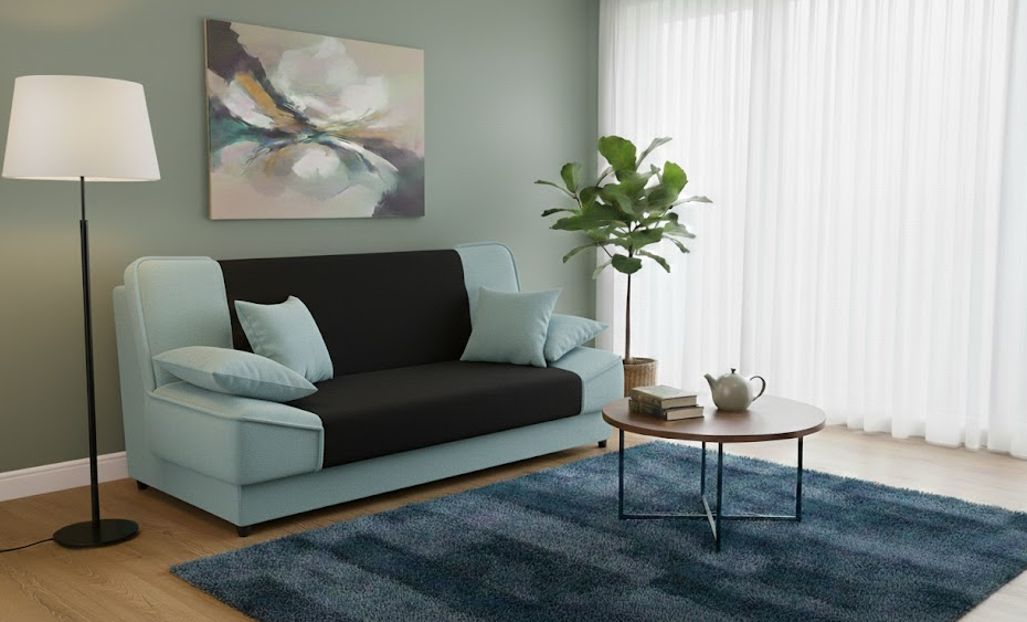 Strona główna » Sofy i Wersalki » wersalka Maxim 72 czarno-błękitna na sprężynach z funkcją spania i pojemnikiem