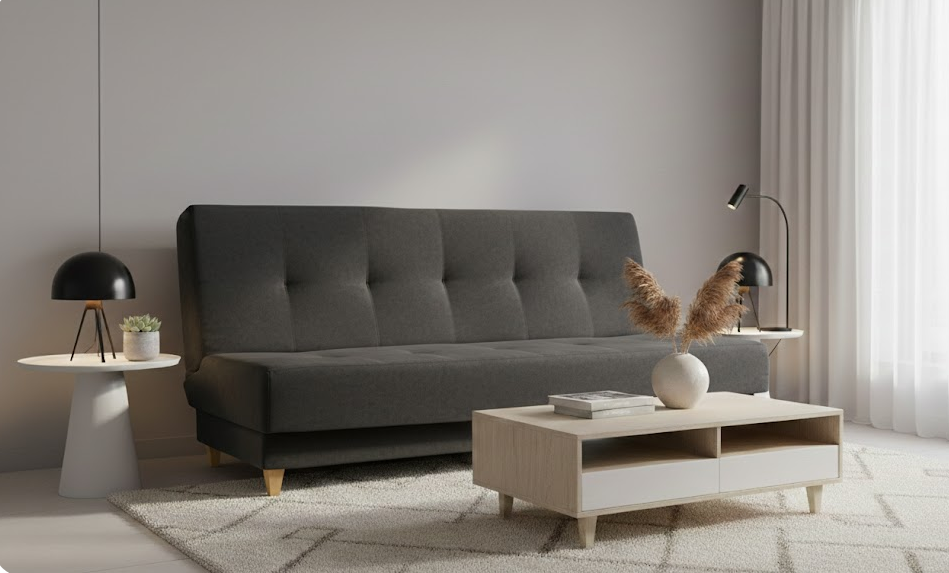 Wersalka Edi to połączenie sofy i łóżka w jednym. Jej prosty, ale nowoczesny design pasuje zarówno do pokoju młodzieżowego jak i biura. Pikowania i podwójne przeszycia oraz plastikowe chromowane nóżki tworzą z ze sprawdzonej finki mebel do każdego wnętrza.